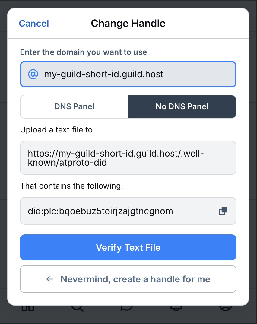 Make <your-guilds-short-id>.guild.host available for you to use as your Bluesky handle.
