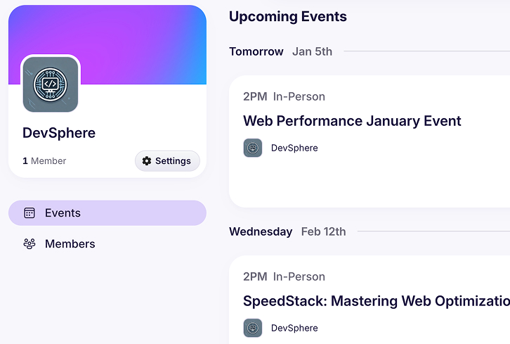 For example: Are you hosting a JavaScript event in your local town? With our Networks features, you can connect with organisers in other cities and promote your event across multiple places.